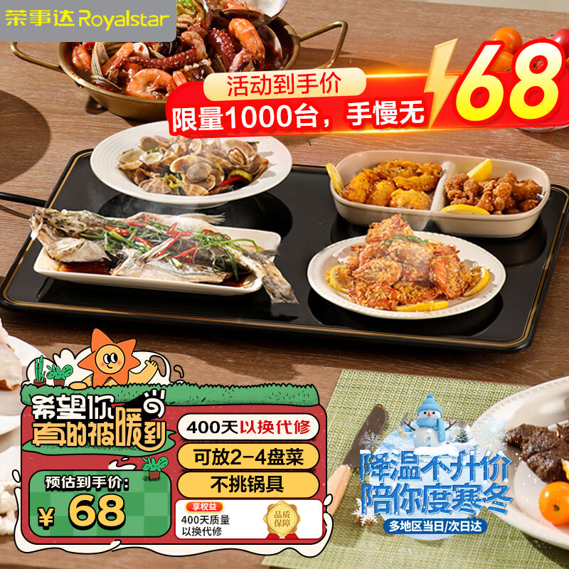 荣事达暖菜板 家用多功能方形热菜保温板 烘干发酵解冻快速升温多功能加热板RS-HR100A价格:68.00元!