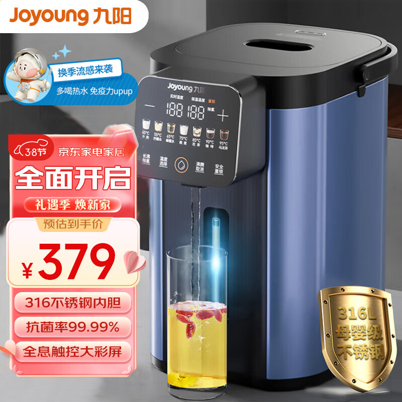 九阳(Joyoung)电热水瓶电热水壶烧水壶316L不锈钢八段保温5.5L大容量饮水机烧水一体机开水壶保温煮水壶电水壶 夜宴蓝全息彩屏电热水瓶 5.5L价格:499.00元!