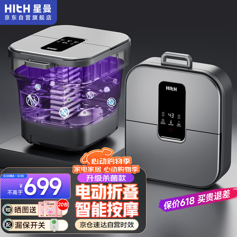 HITH杀菌泡脚桶按摩足浴盆 电动折叠升降洗脚桶 智能恒温加热按摩足疗泡脚盆 父亲节礼物 YMZ-D6价格:899.00元!