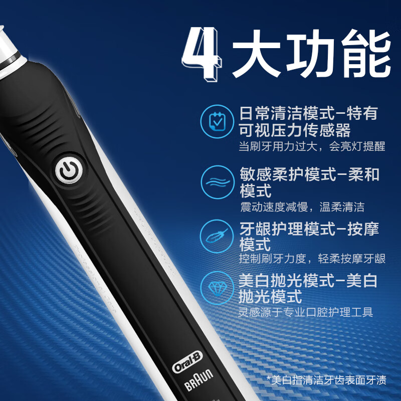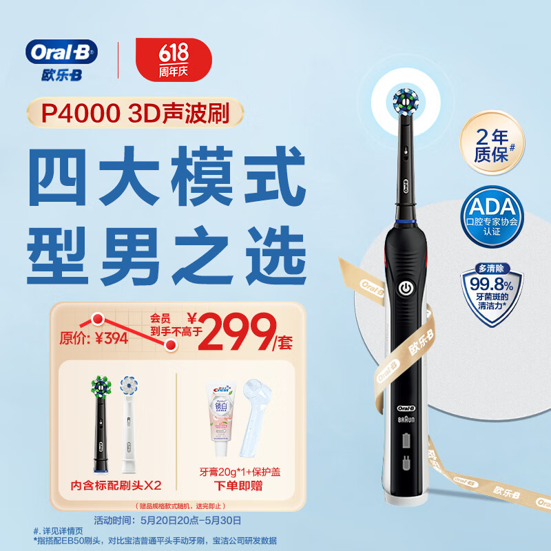 欧乐B成人电动牙刷成人P4000深度清洁牙龈按摩3D声波P系列圆头送男友送女友情侣送礼赠生日礼物520礼物价格:349.00元!