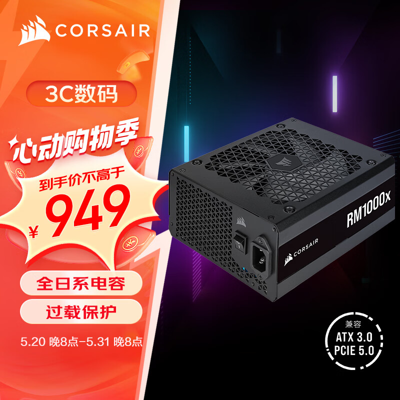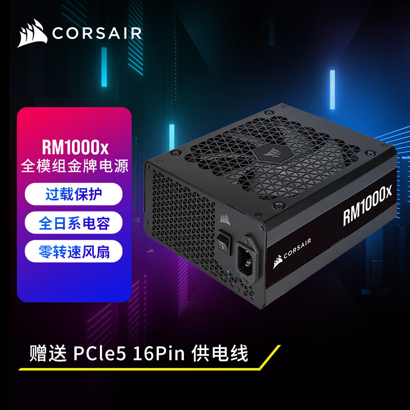 美商海盗船 (USCORSAIR) RM1000x 1000W电源 支持4090/磁悬浮风扇/金牌认证/全模组价格:949.00元!