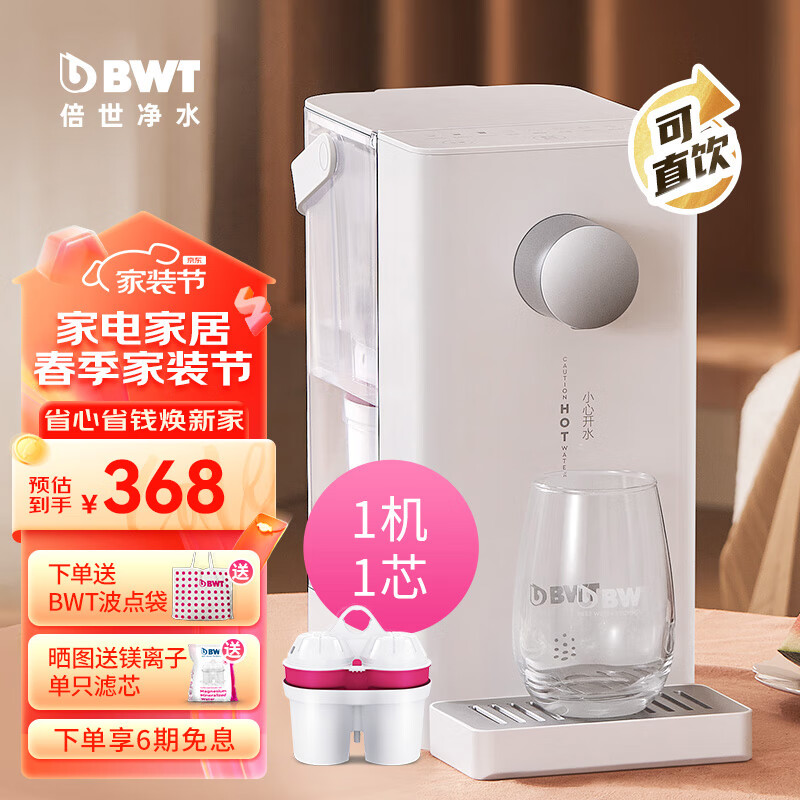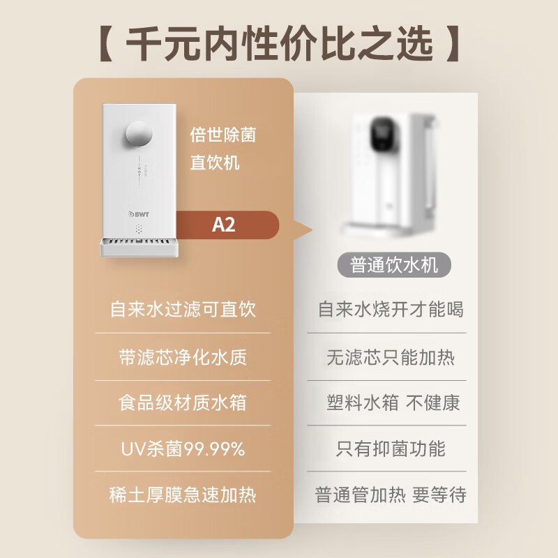 倍世(BWT)即热式饮水机家用台式净饮一体机净水器即热即饮桌面式UV杀菌直饮机免安装 A2净饮机(1机1芯) 即热型价格:368.00元!
