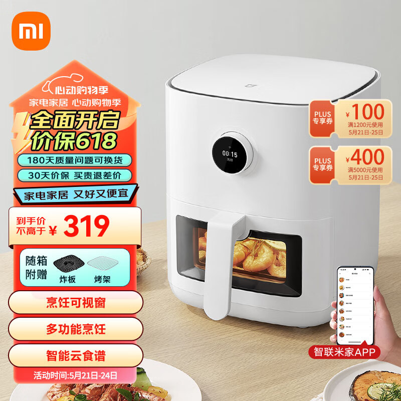 米家小米空气炸锅烤箱一体机电炸锅 可视化窗口 食品级不粘涂层 烤红薯薯条 多功能智能互联Pro 4升价格:319.00元!