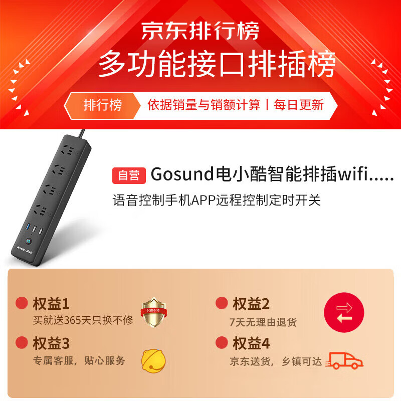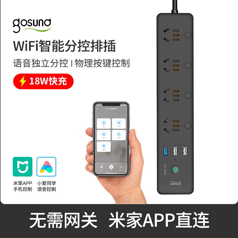 gosund智能排插 分控定时 鱼缸专用 语音智控 wifi排插 USB智能排插已接入米家APP 远程开关 CP5-B价格:165.00元!