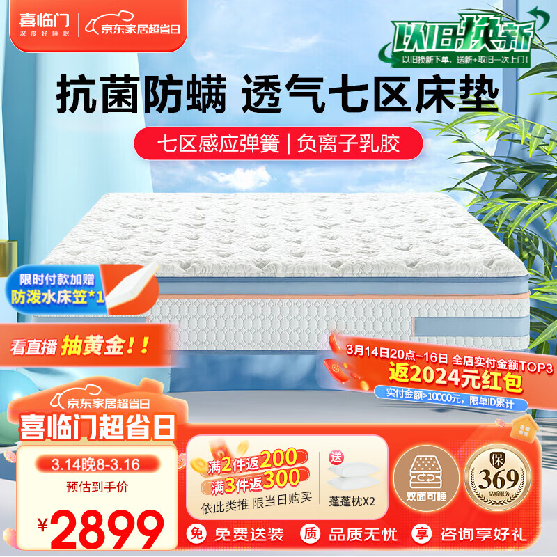 喜临门负离子乳胶 七区独袋弹簧黄麻床垫 漾1.8x2.0米价格:2899.00元!