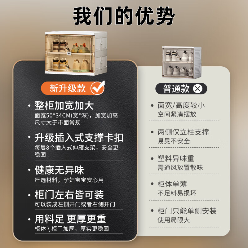 4、东西确实很不错,非常容易安装,不需要安装说明书轻轻松松装好,吸磁扣很方便,防尘又容易开关,整体颜值也很百搭,可以放大尺寸的鞋,家里鞋子收纳就靠它了