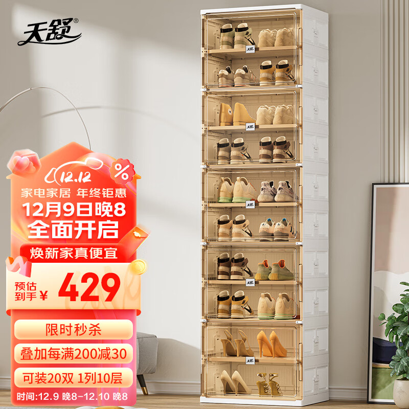 天舒免安装折叠透明鞋盒简易鞋柜门口玄关鞋架鞋子收纳盒 20双1列10层价格:489.00元!