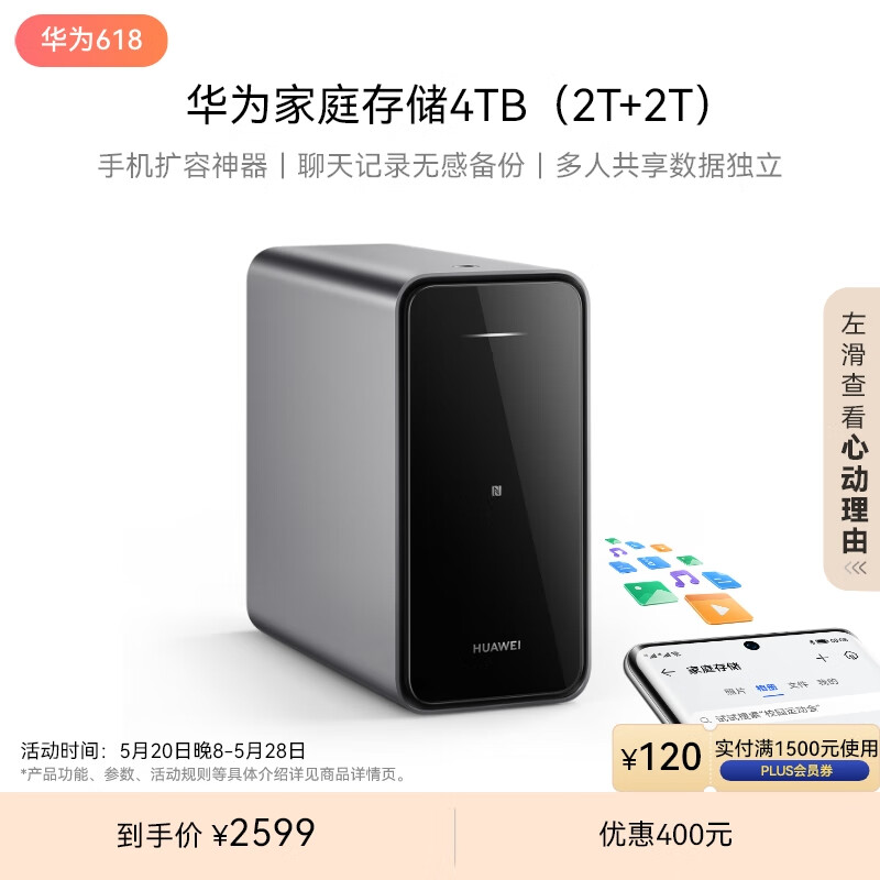 华为家庭存储4TB Pura 70手机一碰扩容 双盘位nas网络存储器相册备份家用硬盘网盘私有云服务器价格:2599.00元!