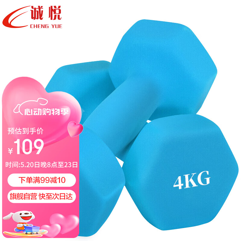 诚悦彩色浸塑哑铃男女士家庭用健身塑型器材组合套装4kg*2浅蓝CY-529价格:119.00元!