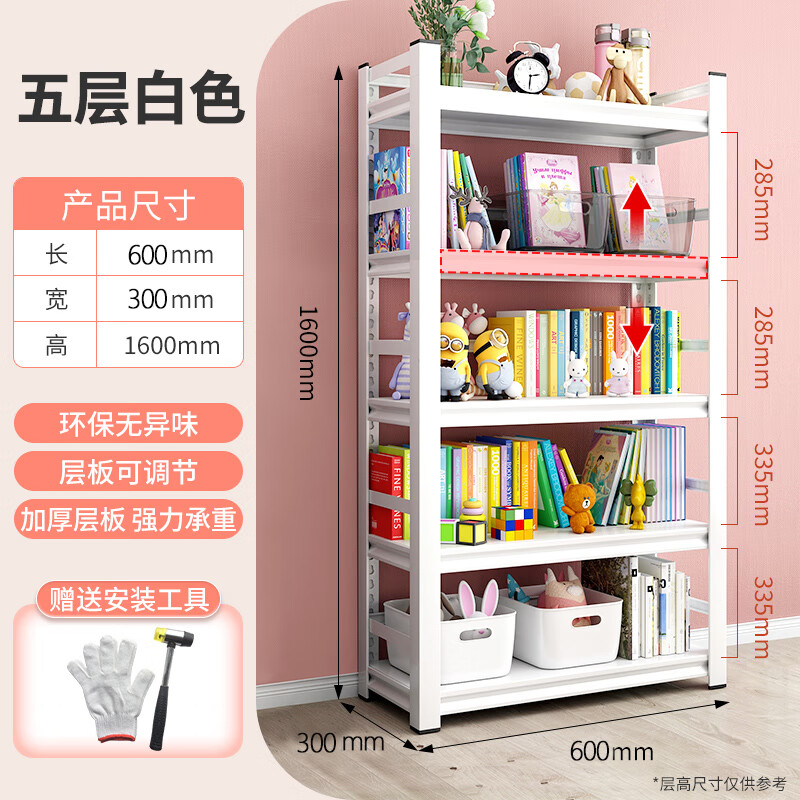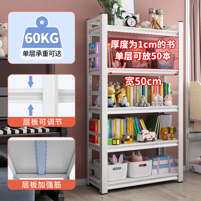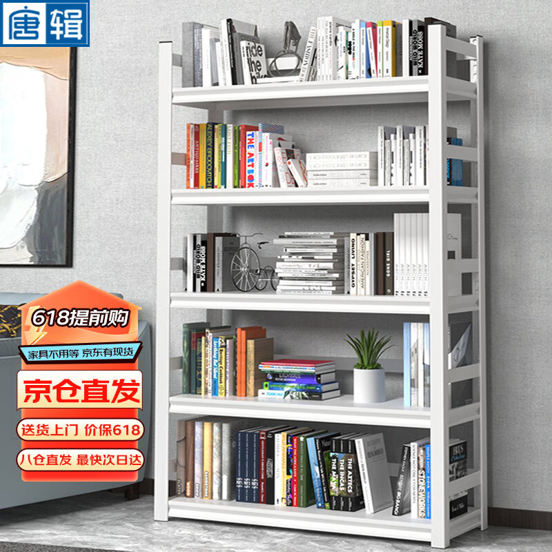 唐辑书架书柜 学生家用落地置物架铁艺图书架子 白色五层 60*30*160价格:359.00元!