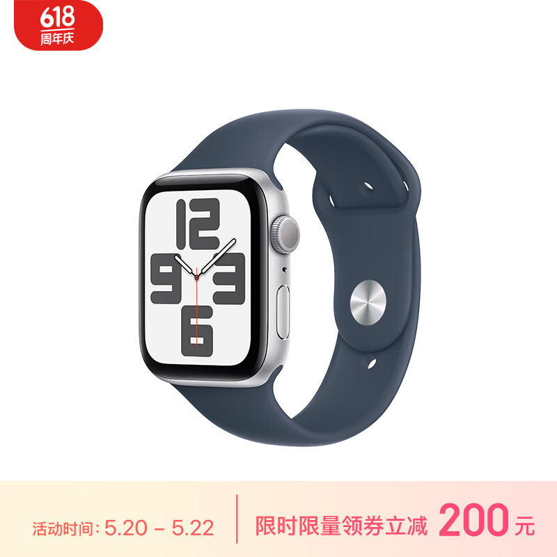 Apple/苹果 Watch SE 2023款智能手表GPS款44毫米银色铝金属表壳风暴蓝色运动型表带M/L MREE3CH/A价格:2199.00元!