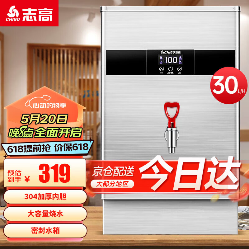 志高(CHIGO)开水器商用智能数显电热开水机全自动烧水器开水炉热水桶学校工厂工地饭店饮水机大容量 SXA-Y-30价格:359.00元!