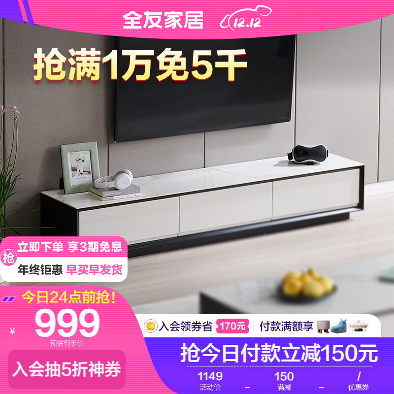 全友家居 电视柜大小户型岩板收纳储物柜子现代客厅家具DW1055价格:1149.00元!