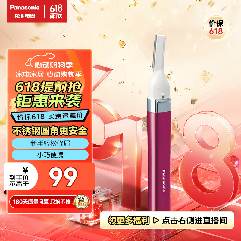 松下(Panasonic)电动修眉刀 剃刮眉毛刀 眉毛修剪器 多功能剃毛器 美容器小物 初学者新年礼物 ES-WF30价格:99.00元!