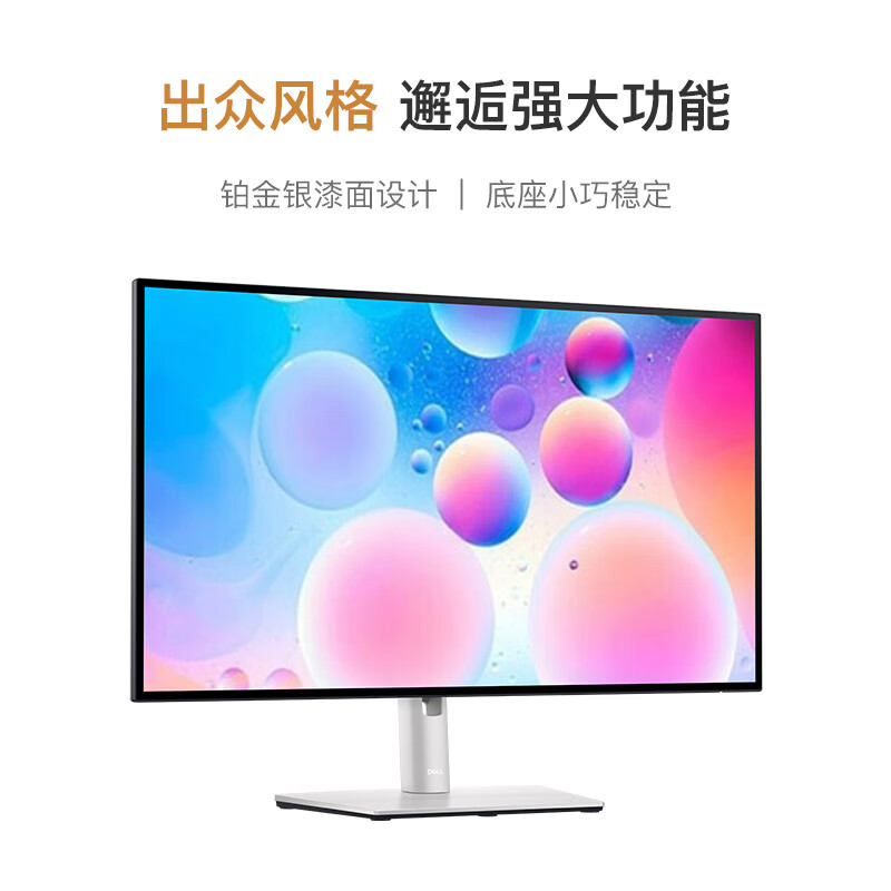 给大家分享下!实实在在的说这款戴尔U2722D是我喜欢的外观,质量还不错,显示器显示效果很好,图像清晰,对比度明显,支架很灵活,调节高度和旋转都很方便,USB接口新颖实用,可以插上键盘和鼠标,再机箱到桌子可以减少线路数量,要是有声音音响功能就更好了