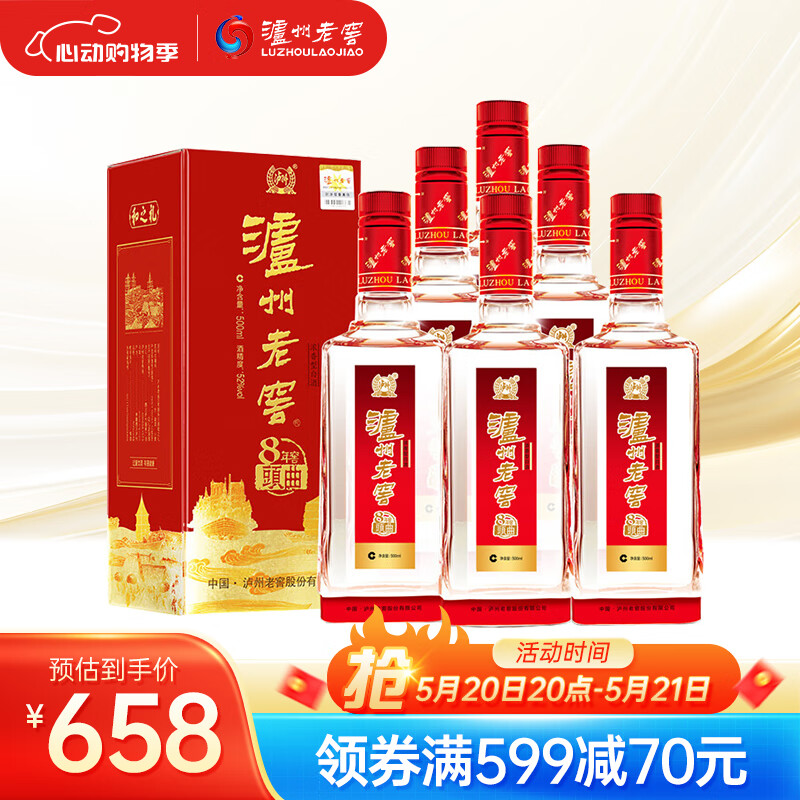 泸州老窖 八年窖头曲 和之礼浓香型白酒 52度500ml*6瓶整箱装价格:605.00元!