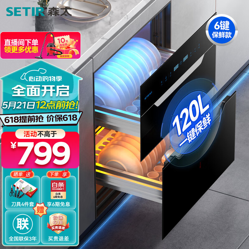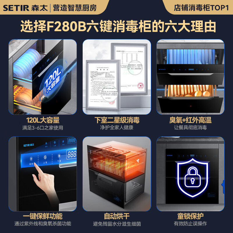 森太(SETIR)F280B消毒柜嵌入式家用小型镶嵌式内嵌式消毒碗柜 臭氧+红外线【六键保鲜款】价格:899.00元!
