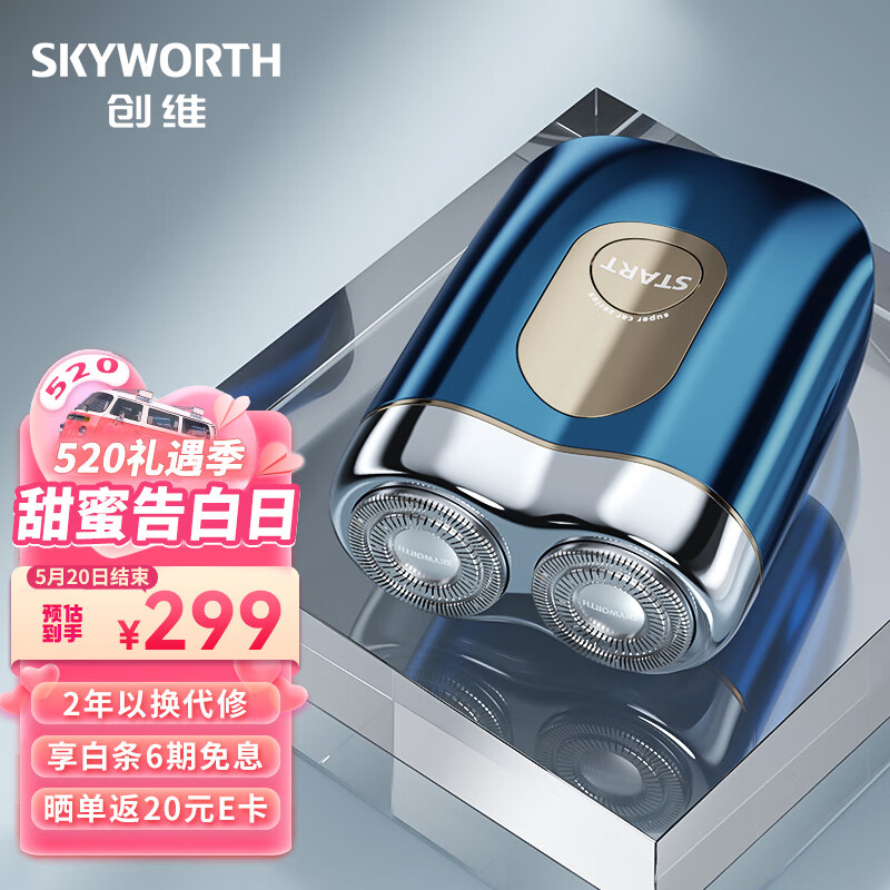 创维剃须刀电动5系合金超跑小钢炮迷你便携刮胡刀 全身防水快充胡子刀 礼物送男友老公礼盒装 深蓝色价格:299.00元!