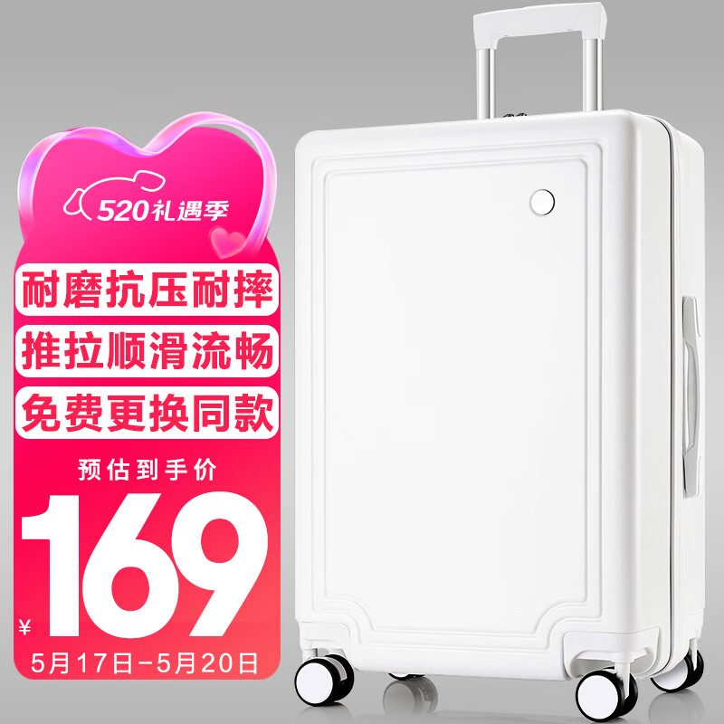B.L.B.L行李箱拉杆箱高颜值端旅行箱包密码箱男女大容量皮箱子24英寸白色价格:169.00元!