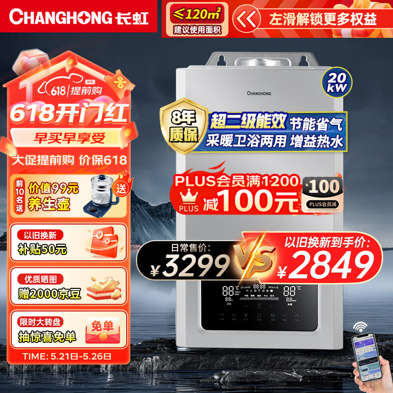 长虹(CHANGHONG)燃气壁挂炉家用天然气双温双控供暖淋浴APP智控多段式燃烧锅炉供暖暖气片地暖热水两用恒温20C1价格:3299.00元!
