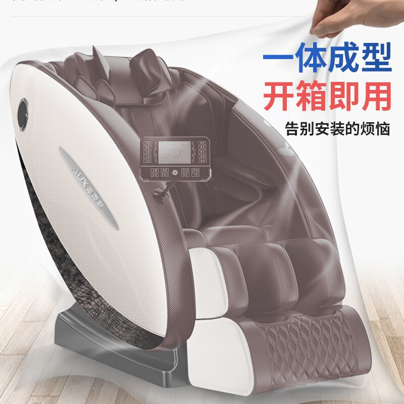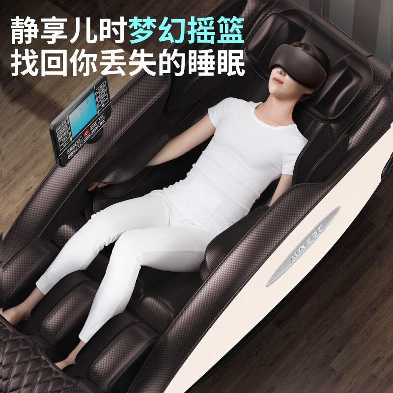 奥克斯(AUX)【同价11.11】按摩椅家用全自动全身太空舱揉捏零重力颈腰背部蓝牙音乐豪华老人按摩椅送父母礼物 旗舰升级棕(加大机身+扶手联动+玉石机芯+语音)优缺点评测评价: