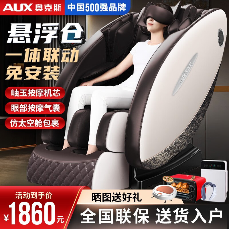 奥克斯(AUX)按摩椅家用全自动全身太空舱揉捏零重力颈腰背部蓝牙音乐智能豪华老人按摩椅送父母礼物 旗舰升级棕(加大机身+扶手联动+玉石机芯+语音)价格:1860.00元!