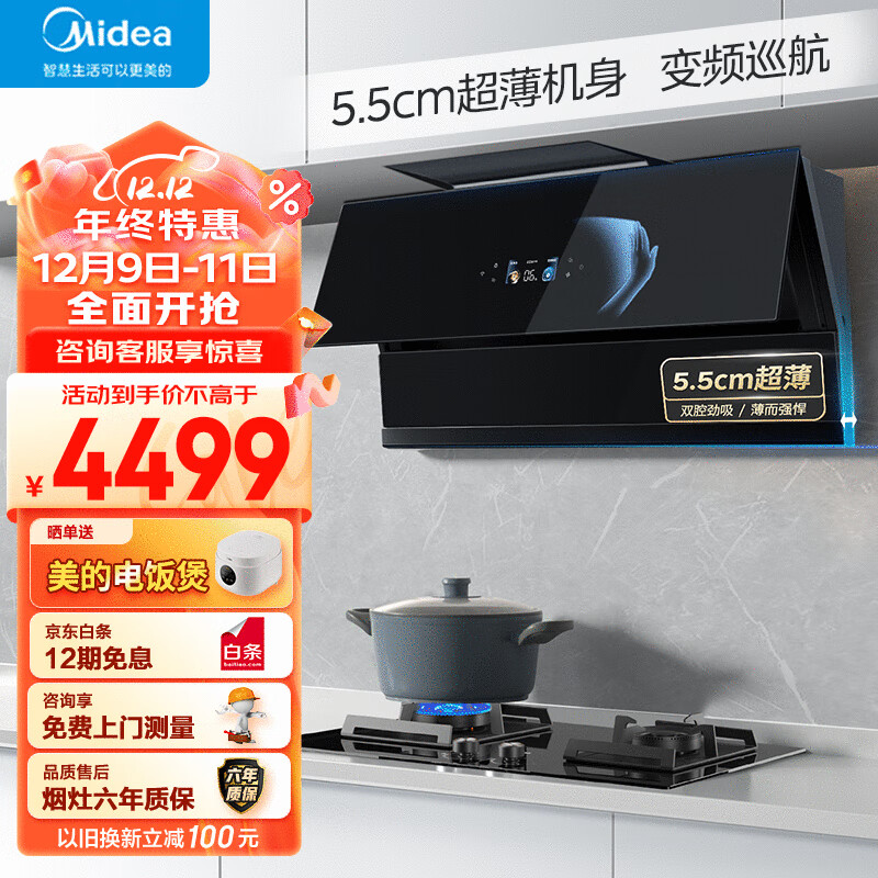 美的(Midea)抽吸油烟机灶具套装 超薄近吸非顶侧双吸25风量侧吸防干烧套装羽翼星河FC7+Q518S天然气价格:4499.00元!