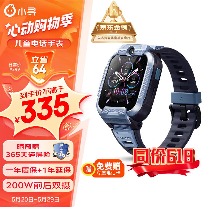 小寻 儿童电话手表X5 长续航智能儿童手表4G通双摄视频拍照定位 小学生男孩礼物 天才蓝价格:335.00元!
