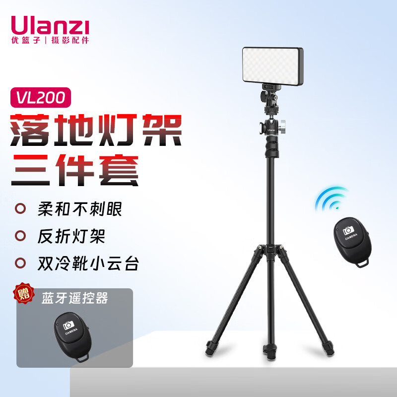 ulanzi 优篮子 VL200双色温补光灯落地灯架三件套单反相机口袋便携直播美颜柔光灯人像摄影拍照打光灯价格:347.00元!