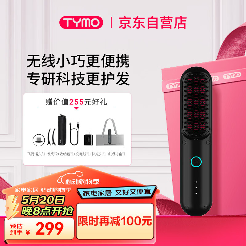 TYMO无线直发梳负离子养发护发两用夹板神器家用美发造型梳护发梳电梳子直板夹 520送女生节生日礼物价格:299.00元!