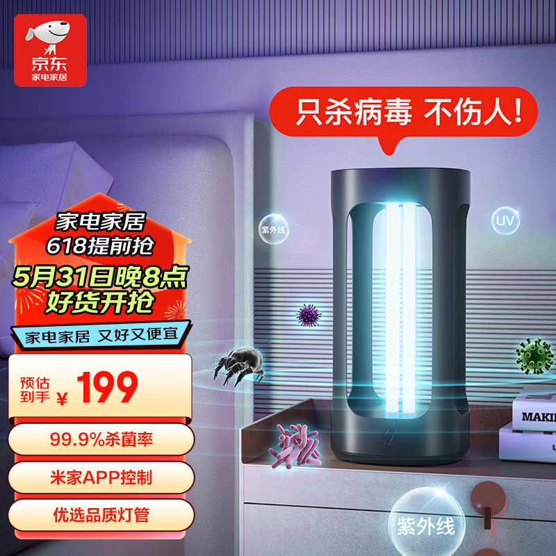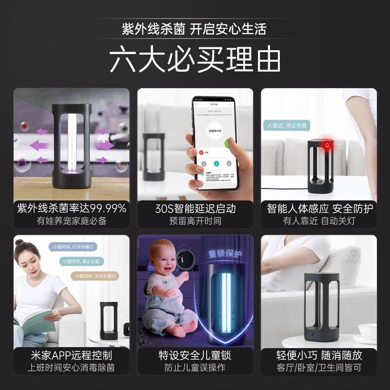 智选京品智能消毒灯five智能人体感应家用移动式紫外线灯管杀菌灯 稳定杀菌持久耐用 杀菌灯价格:199.00元!