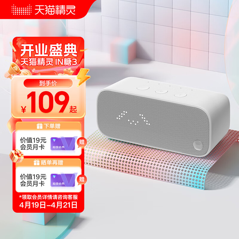 天猫精灵智能蓝牙音箱 家用智能闹钟时钟音响 声控迷你音箱 AI语音控制生日礼物 IN糖3 冲鸭白价格:129.00元!