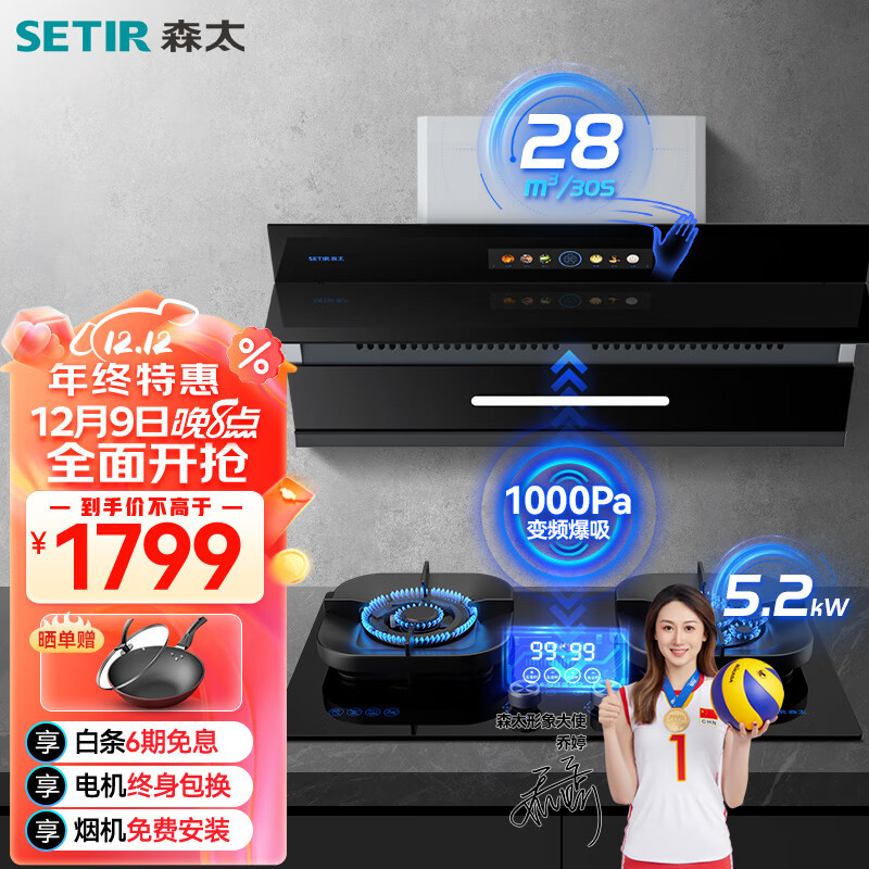 森太(SETIR)侧吸式抽油烟机烟灶套装 变频巡航大吸力家用吸油烟机 5.2kW鸳鸯定时灶 B690BQ+TM81天然气价格:2099.00元!