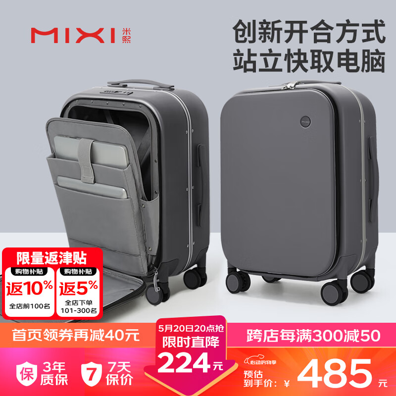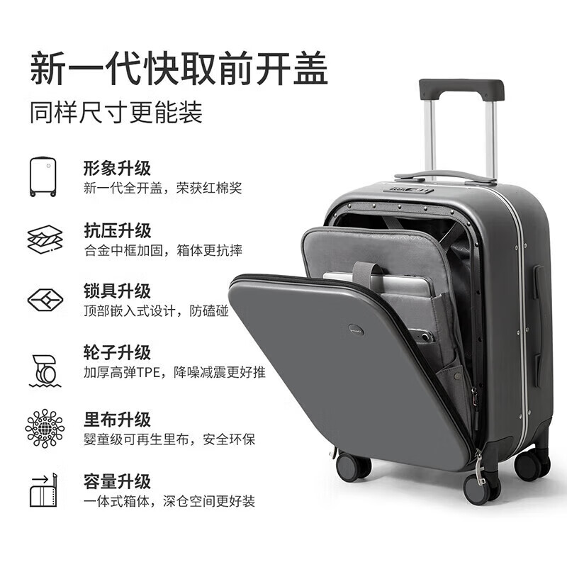 米熙前开盖拉杆箱子铝框箱中号托运行李箱男密码箱旅行箱22英寸矿岩灰价格:709.00元!