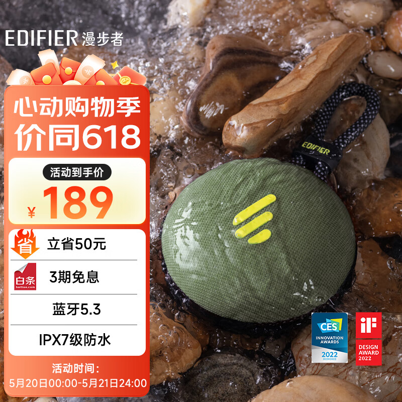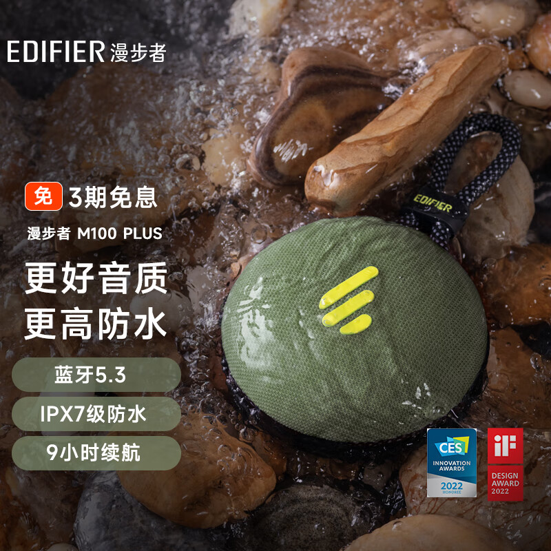 漫步者(EDIFIER)M100 Plus 便携式蓝牙音箱 户外音箱 低音炮 蓝牙5.3 IPX7级防水 户外露营 森林绿价格:219.00元!
