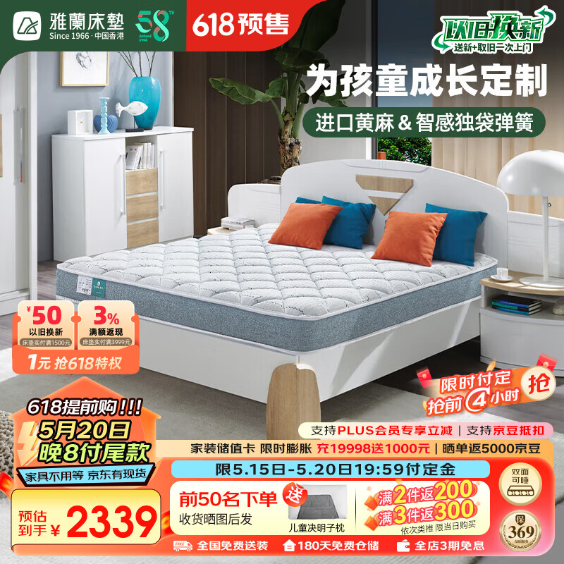 雅兰抑菌面料进口乳胶黄麻床垫 独袋弹簧er童床垫 蘭精灵 1.5*2米价格:3839.00元!