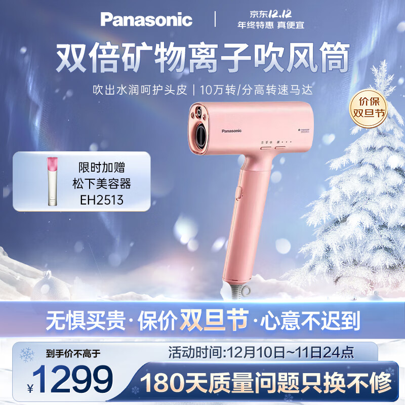 松下(Panasonic)电吹风机大功率高速大风力速干送老婆女友便携纳诺怡吹发护发家用电吹风筒NX70锦鲤色礼盒款价格:1299.00元!