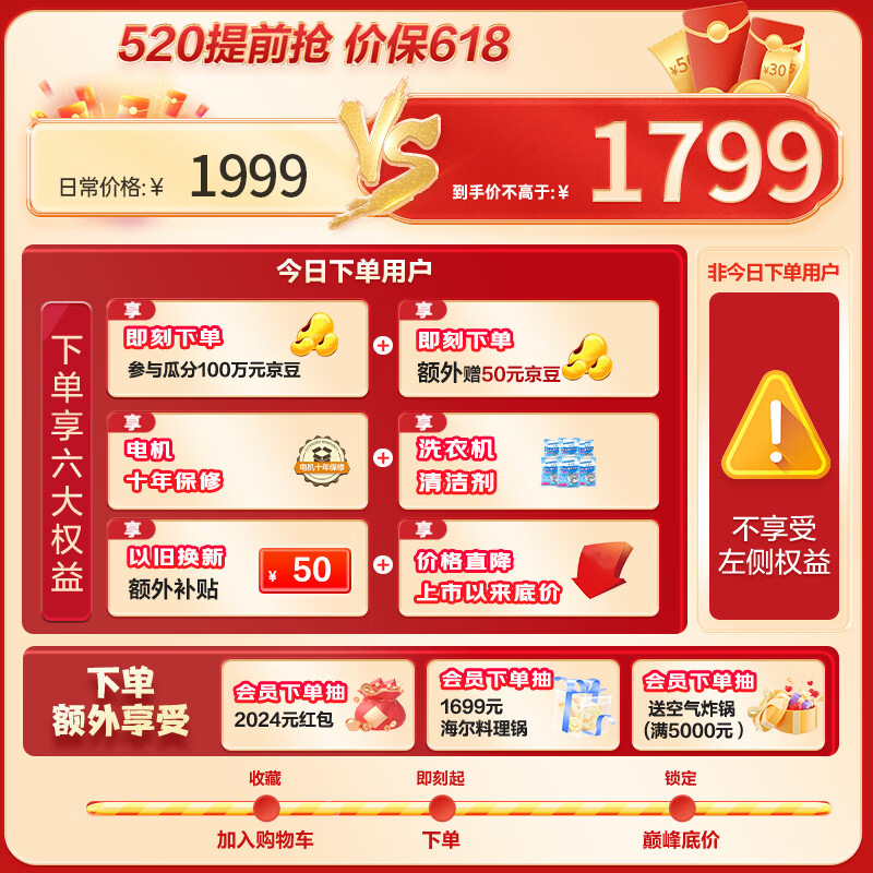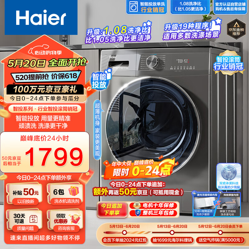 海尔(Haier)滚筒洗衣机全自动单洗 超薄家用 10公斤大容量【金榜推荐EG100MATE55】一级能效 以旧换新价格:1846.00元!