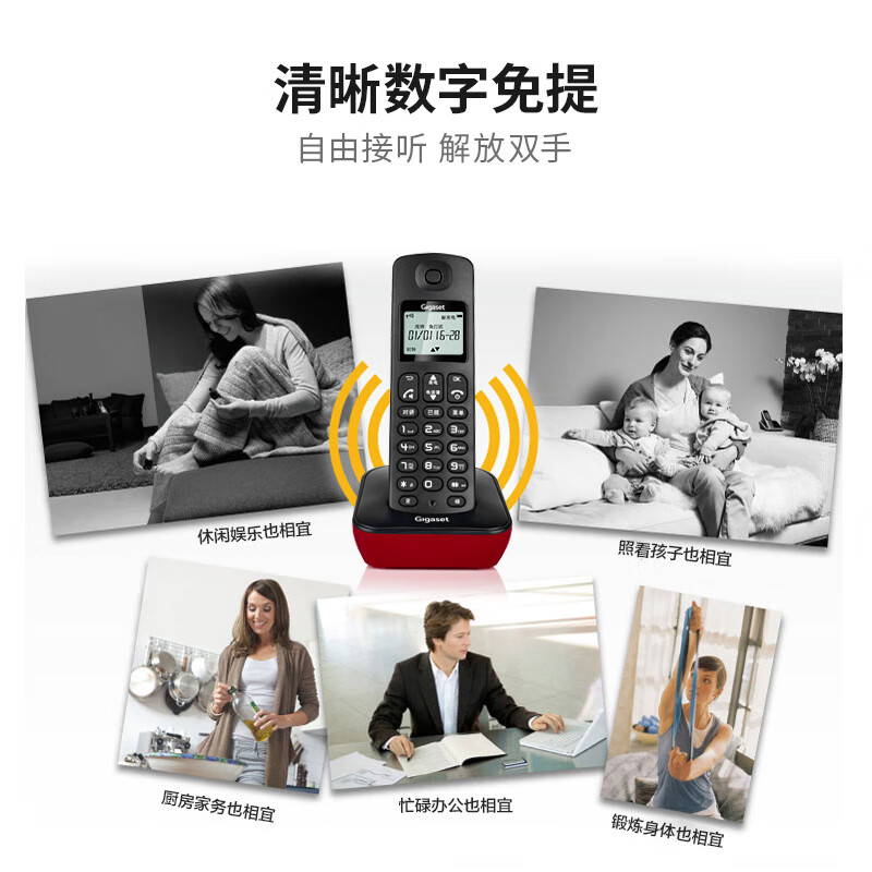 Gigaset原西门子品牌电话机A191数字无绳电话单机中文显示双免提家用办公座机子母机(魔力红)价格:118.00元!