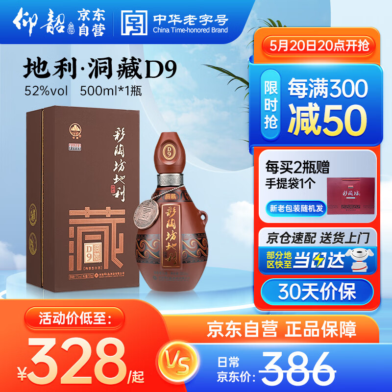 仰韶彩陶坊 地利洞藏D9 52度 陶融型白酒 500ml 单瓶盒装 宴请送礼价格:386.00元!