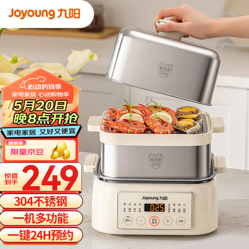 九阳(Joyoung)10L大容量电蒸锅电煮锅电火锅多用途锅家用多功能智能电蒸锅蒸包子锅两层大容量GZ975价格:229.00元!