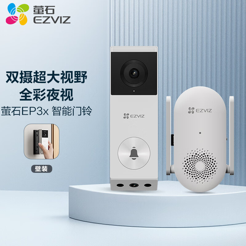 萤石EP3X白色可视门铃双摄+128G监控专用卡 300万像素+200万像素 双摄像头家用监控 智能门铃摄像机价格:559.00元!