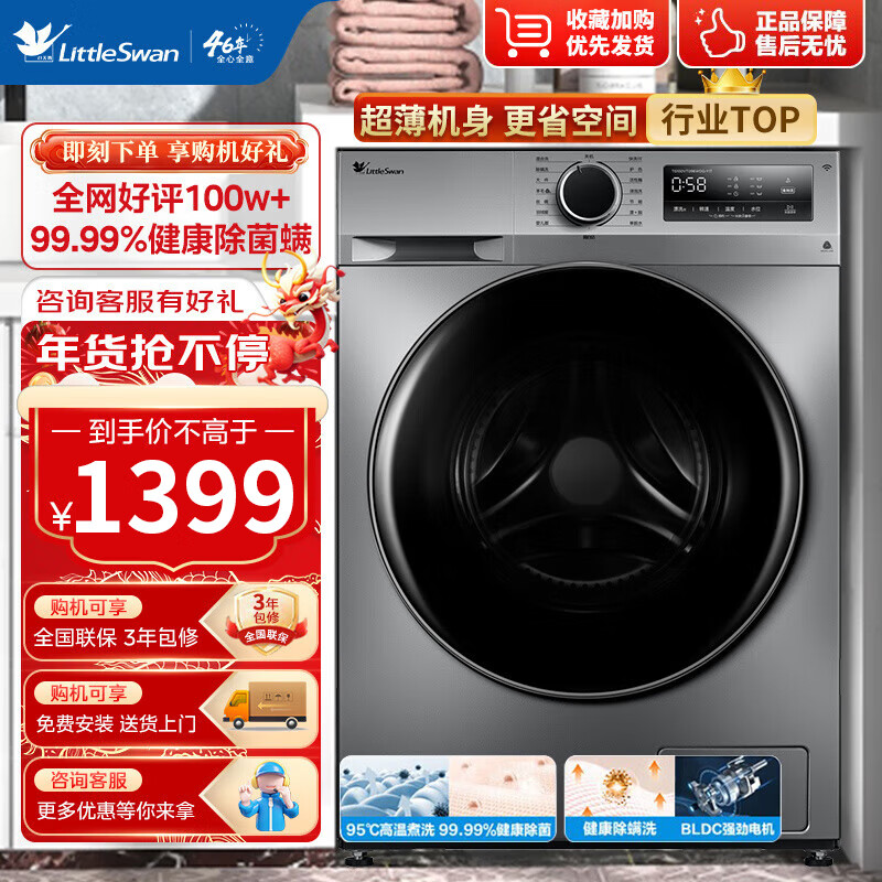 小天鹅(LittleSwan)滚筒洗衣机全自动 深层除菌净螨 BLDC变频 10公斤大容量 TG100VT096WDG-Y1T价格:1399.00元!