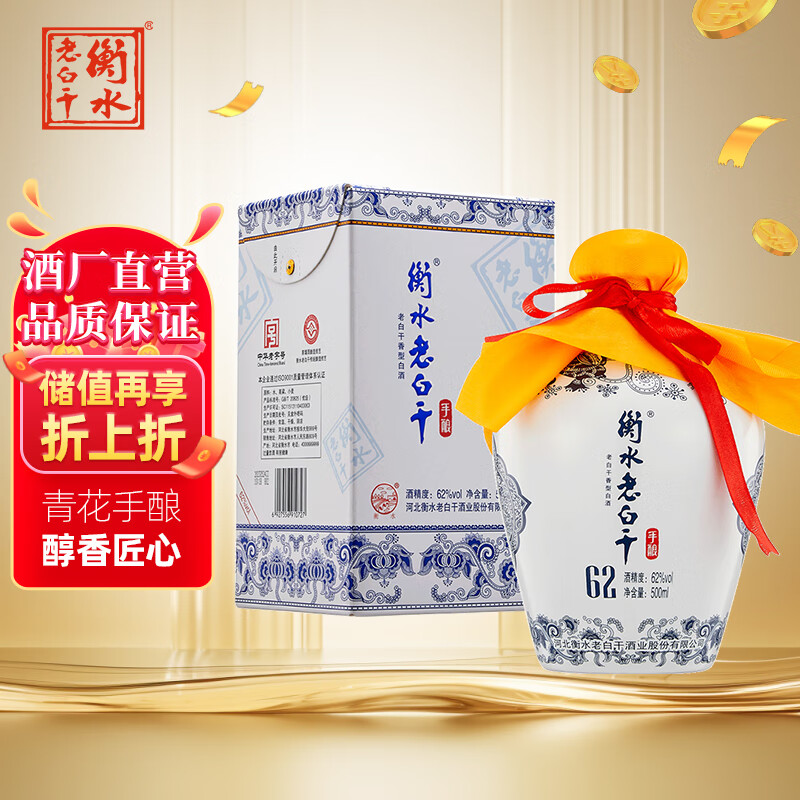 衡水老白干 青花手酿 老白干香型白酒 62度500ml 单瓶装 口粮白酒价格:99.00元!