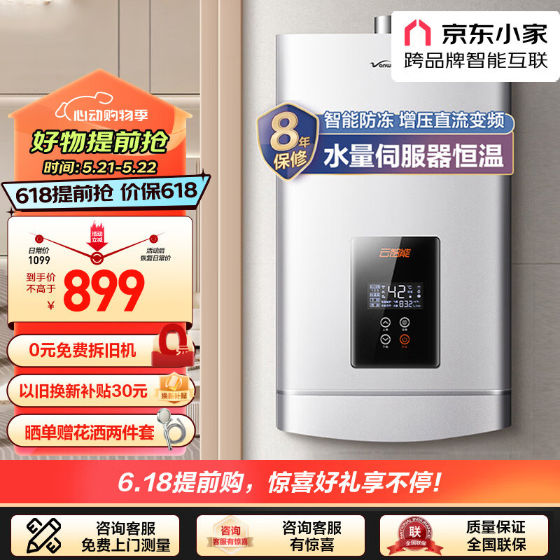 万和(Vanward)13升燃气热水器京东小家智能生态天然气智能防冻 直流变频 增压水量伺服器恒温 JSQ25-560J13价格:999.00元!