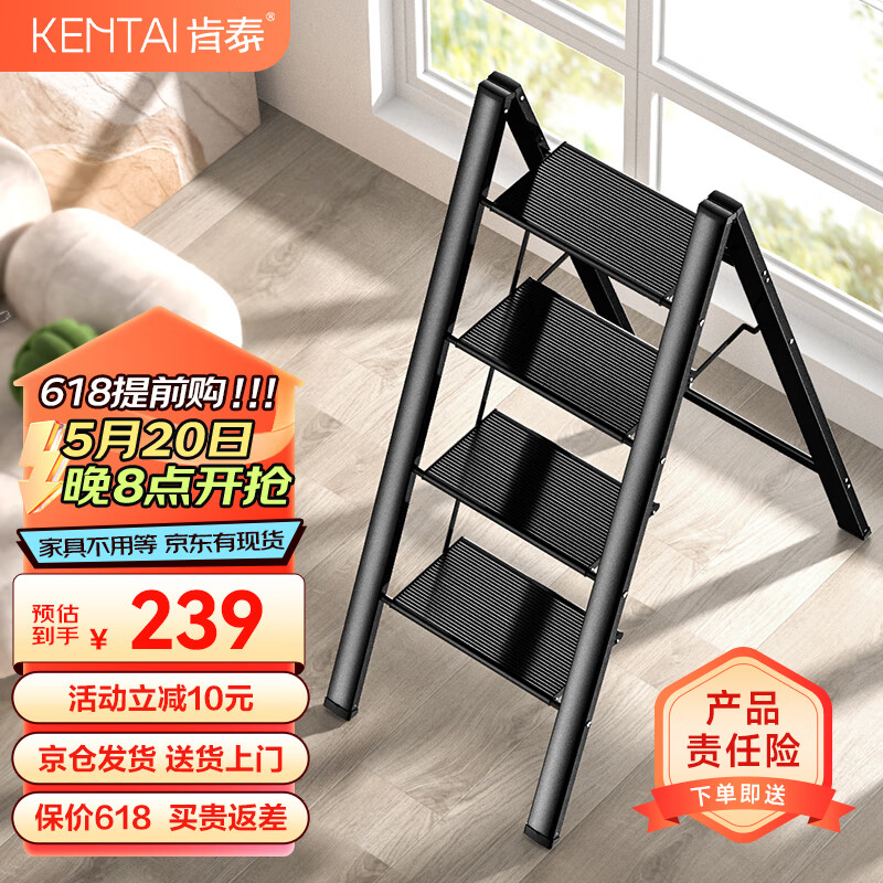 肯泰(KENTAI)梯子家用折叠梯伸缩人字梯多功能铝合金室内工程梯移动楼梯A3-H4价格:386.00元!