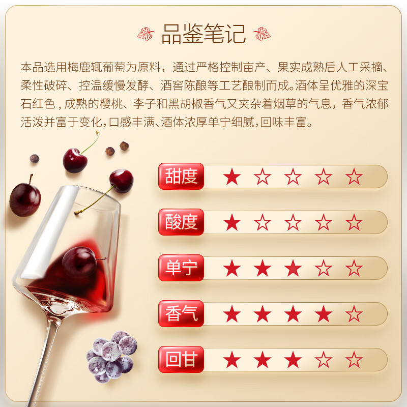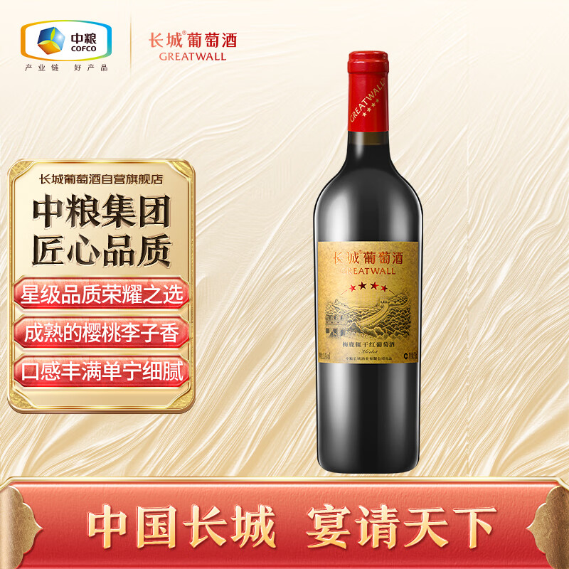 长城 四星梅鹿辄干红葡萄酒 750ml 单瓶装价格:175.00元!