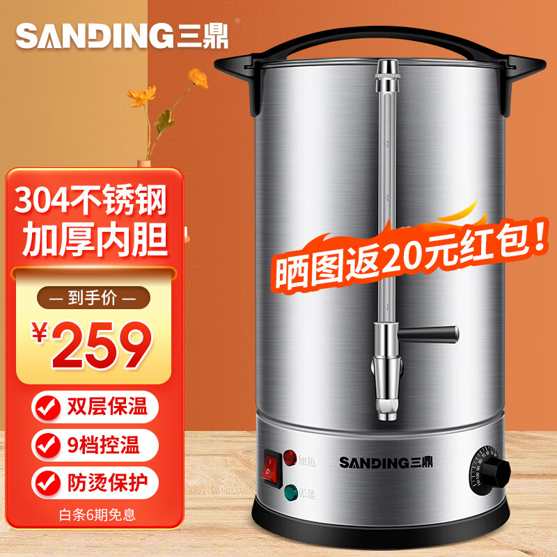 三鼎电热开水桶开水器商用烧水器奶茶店家用不锈钢保温热水桶大容量 SD-12L价格:259.00元!