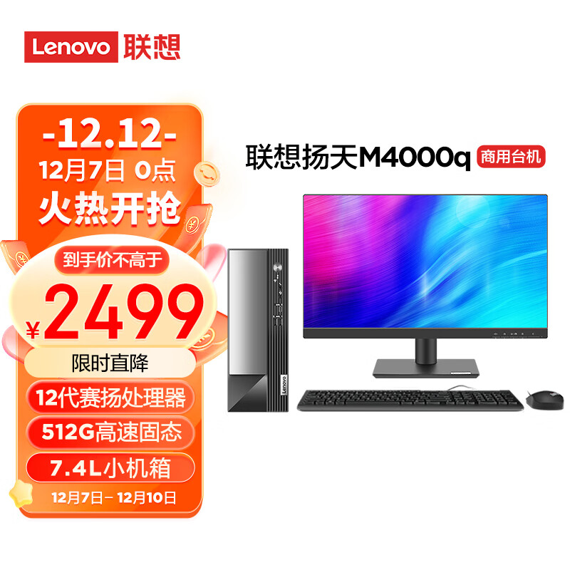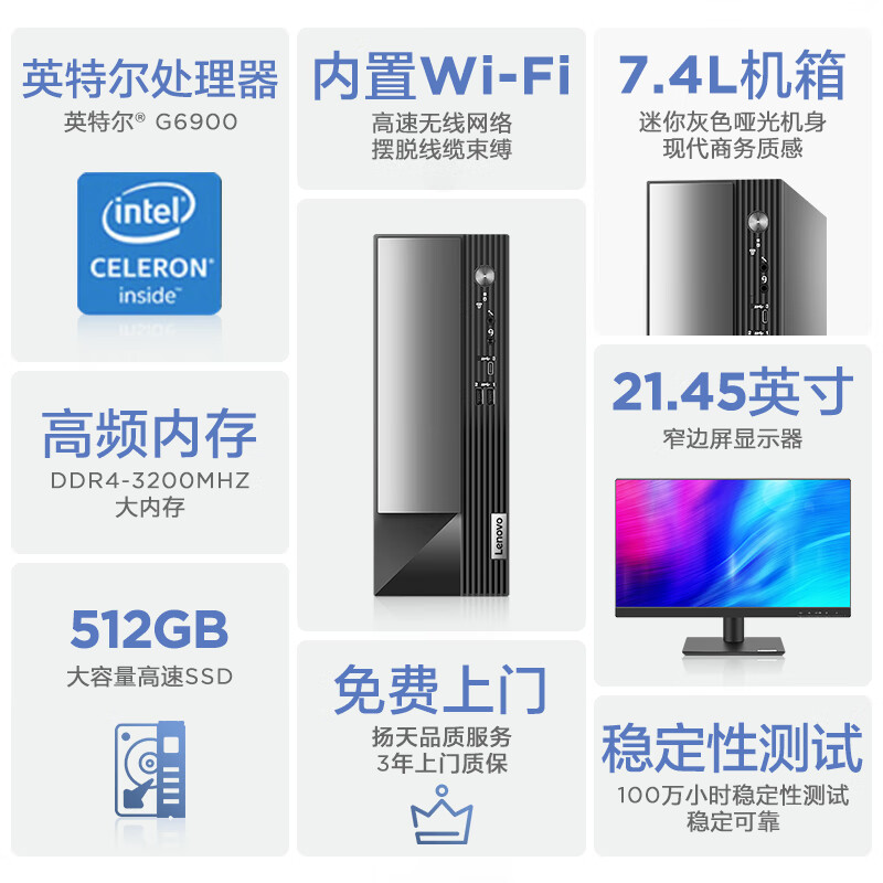 联想(Lenovo)商用办公台式机电脑主机 扬天M4000q 英特尔处理器(G6900 8G 512G SSD Win11)21.45英寸价格:2499.00元!