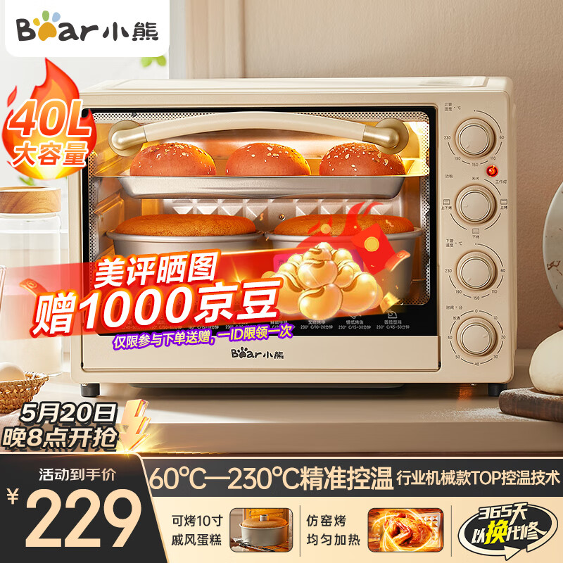 小熊(Bear)电烤箱 40L家用大容量多功能 上下独立控温 机械操控 多层烤位 多功能烘焙易操作DKX-B40L9价格:229.00元!